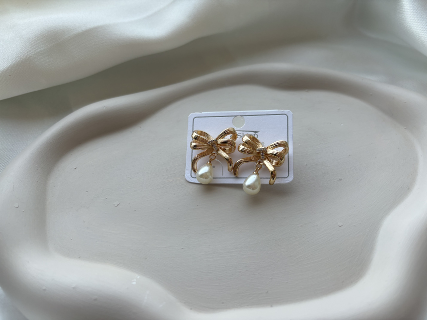 گوشواره پاپیونی آویز مروارید ضدحساسیت